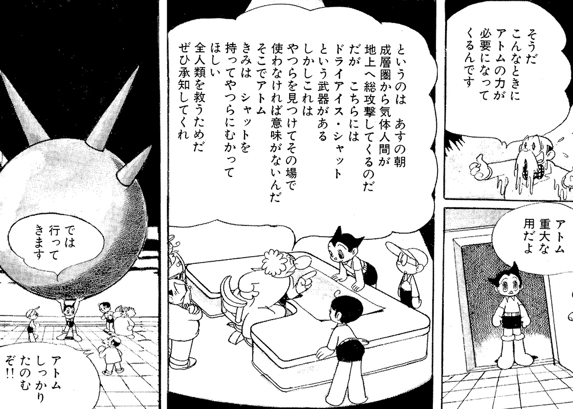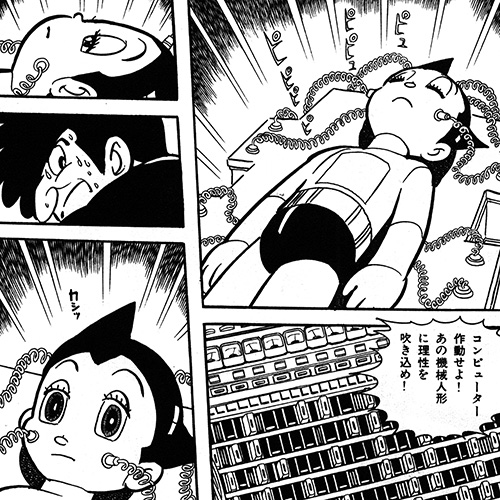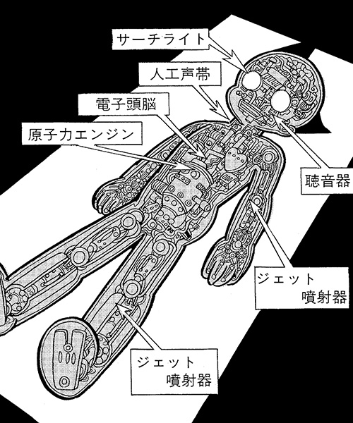 Today, my young readers have already known a rocket to the moon and a computerized brain as common knowledge, saying "A vacuum tube in Astro's computerized brain? It's out of fashion. Even in a calculator, transistors or diodes are used". In their imagination, quite advanced robots equipped with computerized brains and atomic engines just like Astro Boy have already been flying, helping humans in daily life. (omitted)